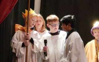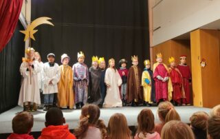 In der Aula waren alle SchülerInnen und LehrerInnen versammelt und ließen sich von den Sternsingern erzählen, was diese für eine wichtige und tolle Aufgabe haben.
